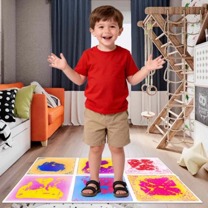 Sensory Liquid Floor Tiles – 9PCS 12″x12″ Play Mats for Kids, Autism, Learning & Gross Motor Development